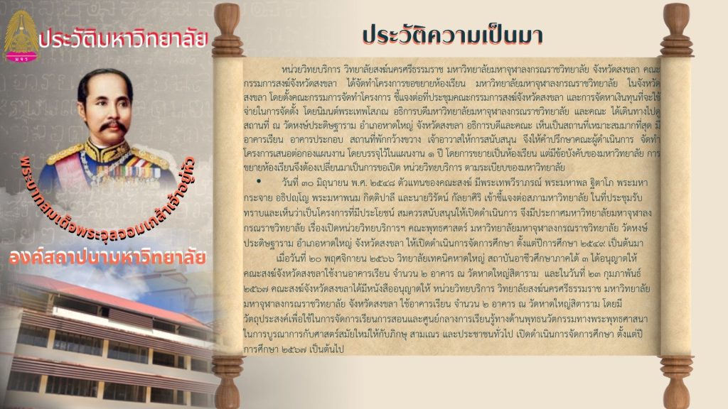 หน่วยวิทยบริการหน่วยวิทยบริการ วิทยาลัยสงฆ์นครศรีธรรมราช มหาวิทยาลัยมหาจุฬาลงกรณราชวิทยาลัย จังหวัดสงขลา